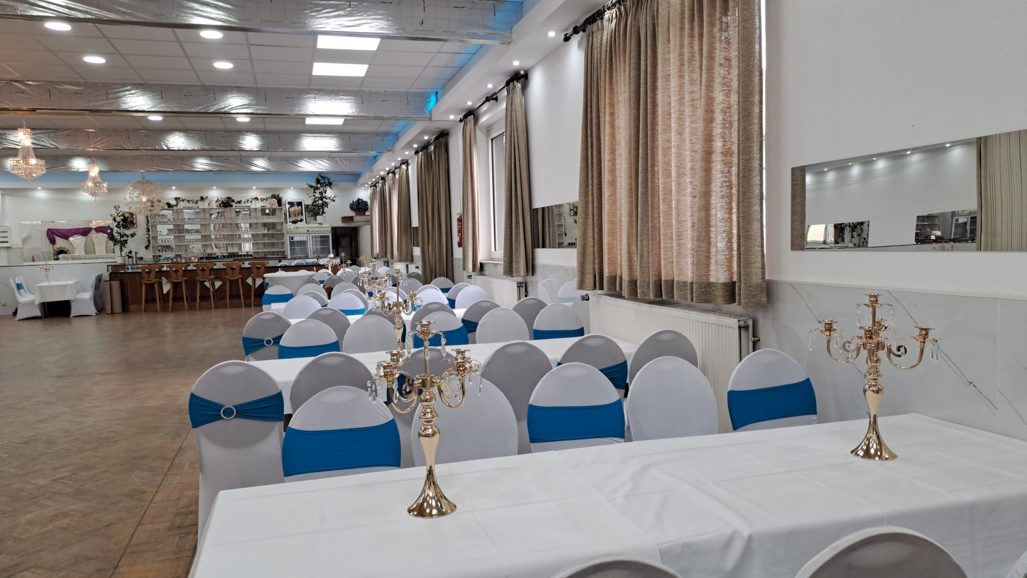 Entdecken Sie das stilvolle Ambiente des Sailani Veranstaltungssaals. Von festlich gedeckten Tischen bis hin zu unserer exklusiven Bar – wir bieten den passenden Raum für jede Feierlichkeit.